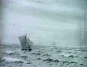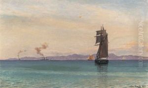 Marine Fra Skaergarden Med Flere Sejlskibe, I Forgrunden Skonnert Med Norsk Flag