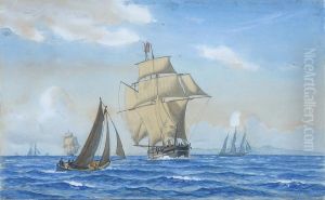 Marine, Sejlskibe Pa Havet, Den Ene Med Svenske Flag