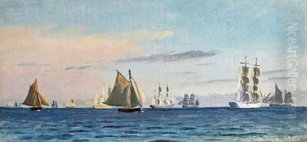 Numerous Sailing Ships On Quite Waters. Signed Chr. Blache 95