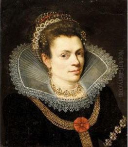 Portrait Of A Lady, Traditionally Identified As Pierina Gravaghi,bust-length, In A Black Dress And White Lace Bonnet