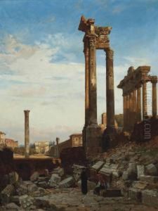 Ital. Landschaft Mit Antiken Saulen U. Fig. Staffage