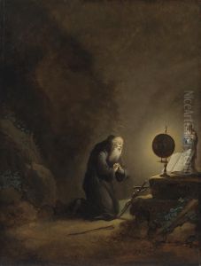 A Hermit Saint Studying The Bible In The Wilderness