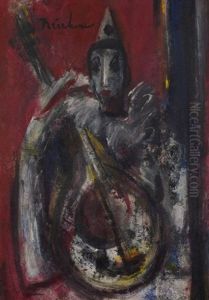 Portrat Eines Musikanten In Der Tracht Eines Harlekin