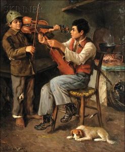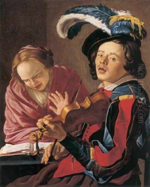 An Allegory Of The Sense Of Hearing: An Interior With A Boy Playing The Violin And A Lady Singing