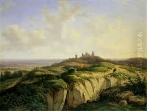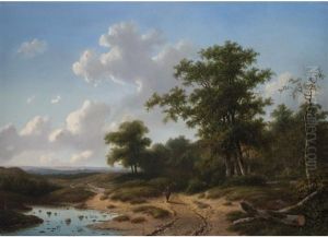 A Summer Landscape With A Hersman And Cattle On A Country Road