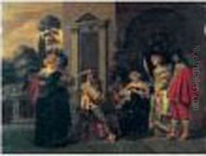 An Elegant Company Making Music, Drinking And Courting In A Garden Setting