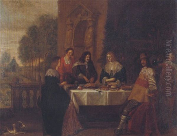An Elegant Company Feasting Upon The Terrace Of A Country House