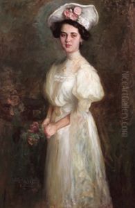 Bildnis Einer Dame Mit Diamantenem Brustkreuz Und Einer Rose