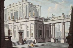 Architekturcapriccio: Palasthof Mit Saulengang Und Figurlicher Staffage