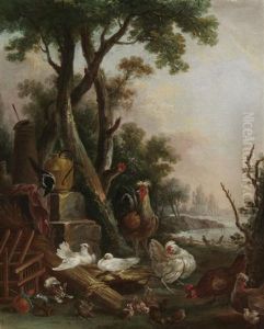 Geflugel Und Gegenstande Landlichen Lebens Vor Einer Fluslandschaft