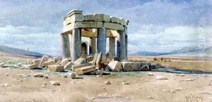 A Capriccio Of Roman Baths With Soldiers By A Tomb