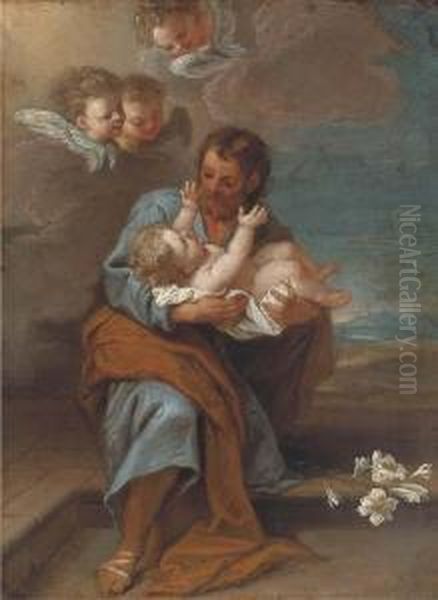 Saint Joseph And The Infant Christ With Cherubim