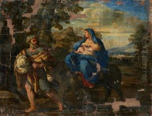 The Madonna And Child With The Infant Saint John The Baptist, Saint Joseph Reading By A River Beyond