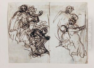The Triumph Of Peace With The Cyclopes Making Armour And The Figure Of War In Chains; A Detail From The Ceiling Of The Salone In The Palazzo Barberini, Rome