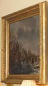 A Winter Landscape With Figures Skating And Sleighing Near A Village