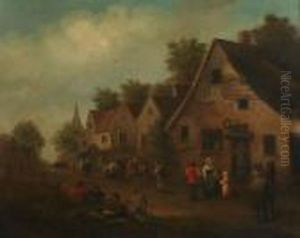 A Village Scene With Numerous Figures