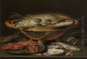 Nature Morte A La Carpe, Au Chat, A La Perche Et Aux Fruits De Mer