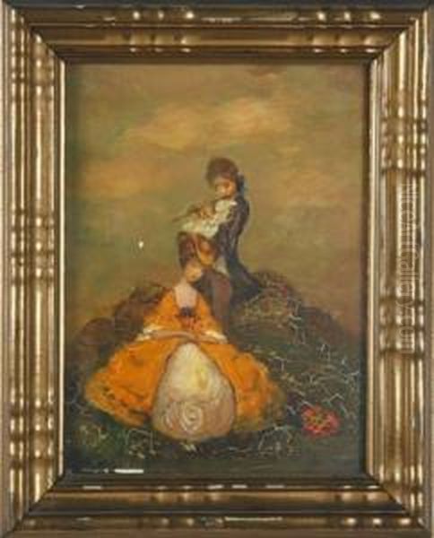 - "zwiegesprach" - Dame Mit Putte Und Singvogel, Ca. 26 X 20 Cm, Re. Oben Betit. Und Signiert
