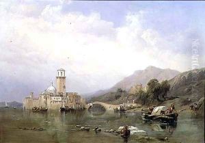 Stanfield's transition from theatre to canvas was seamless, thanks to his mastery over atmospheric effects and detailed observation, honed during his years as a scenic designer. He became a prominent member of the Royal Academy, elected as an Associate in 1832 and a Royal Academician in 1835, affirming his status as a leading artist of his time. His works often depicted scenes from his travels, including the rugged coasts of the British Isles, the bustling ports of the Mediterranean, and the historic landscapes of Europe. Stanfield was particularly noted for his ability to capture the changing moods of the sea and sky, earning him the admiration of both critics and the public.