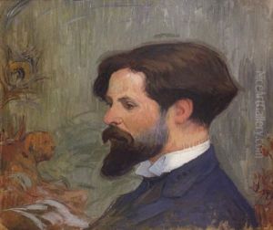 Portrat Eines Malers. Halbfigurenportrat Eines Ca. 40jahrigen Mannes Mit Moustache Und Braunem,...