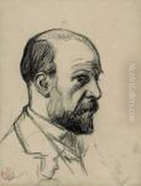 Portrat Odilon Redon Und Zwei Weitere Kleine Kopfstudien. 1885