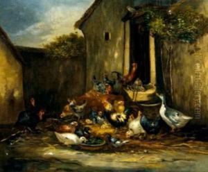 Stilllben Mit Federvieh: Hahn, Huhner, Ente U. Truthahn