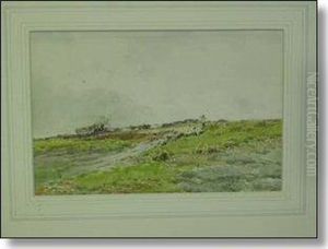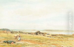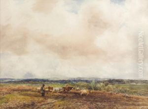 Shepherd With Flock On A Moor