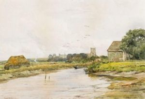 River Landscape With Distant Church