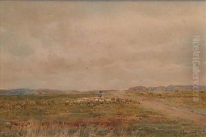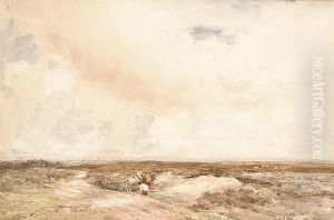 Crossing The Moor, Signed, Watercolour, 22 X 33 Cm.; 8 3/4 X 13 In