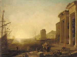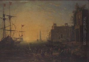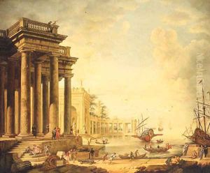 A Neoclassical Capriccio Of Figures On A Quay By A Loggia