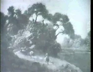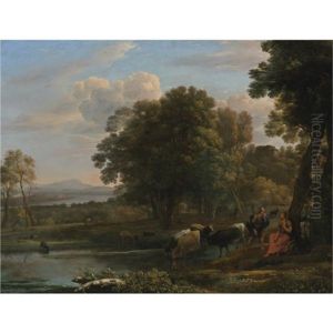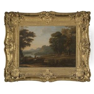 An Italianate River Landscape With A Drover And His Herd Of Goats And Cattle