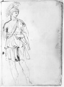 Staende romersk soldat med hjalm. Ingar i "sena skissboken"