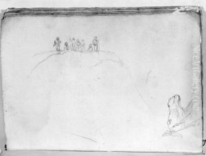 Sma figurer pa en kulle och studie av hasthuvud. Ingar i "sena skissboken"