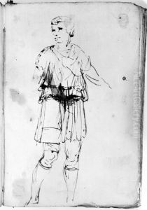 Staende man iford kort tunika. Ingar i "sena skissboken"
