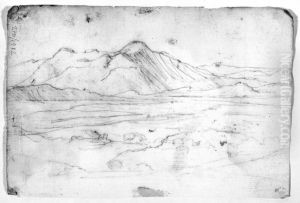 Two Studies of Horses' or Mules' Heads and a Sketch of Distant Hills