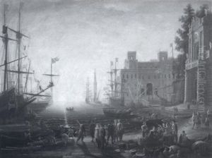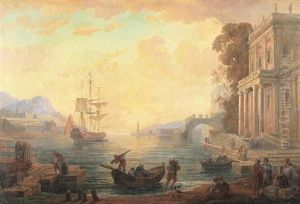 A Coastal Landscape With Shipping And Figures By A Classicalfountain