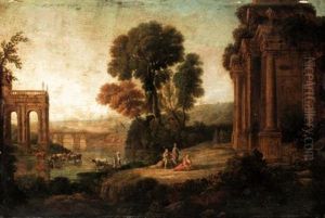 Classical Landscape With Arcadian Figures Before Ruins Beside The River