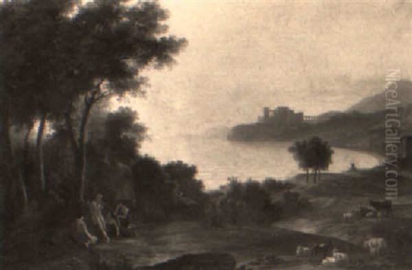 An Arcadian Coastal Landscape With Figures By A Tree