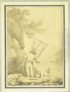 A Mediterranean Coastal Landscape With Fishermen Tending Their Nets