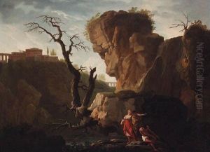 Figures Resting By The Mouth Of A Cave, A Capriccio Of Tivolibeyond