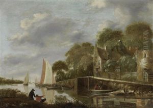 A River Landscape With A Village In The Distance