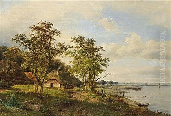 A Summer Landscape With Travellers Along A River