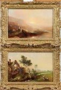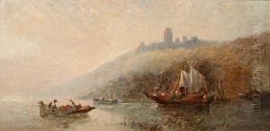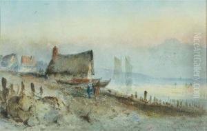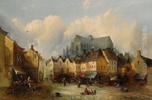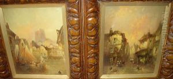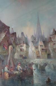 Back Street In Rouen; Busy Harbour Scene, Signed With Initials