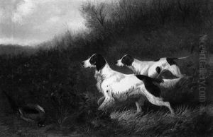 Study Of A Pointer In Heather (+ A Setter; Pair)