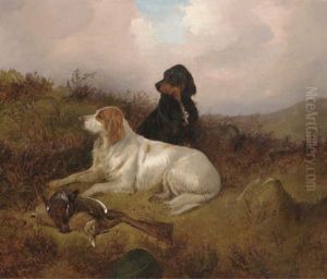 A Gordon And An English Setter In The Scottish Highlands (pair)