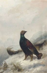 A Setter Retrieving A Grouse, In An Extensive Landscape