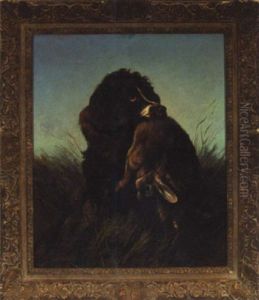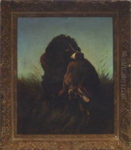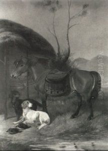 Hunting Scene With Horse And Dogs Surrounding The Day's Bag