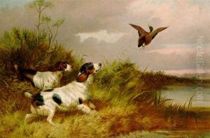 Two Setters Flushing A Pheasant