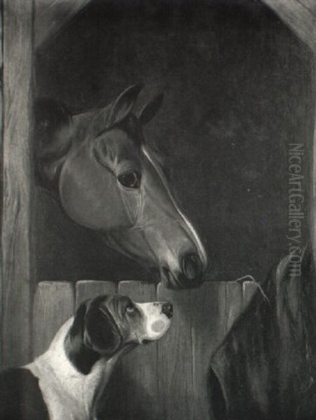 Chestnut Hunter And Fox Hound By A Stable Door