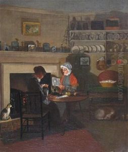 A Plymouth Tavern Interior With Men Smoking At A Table, A Negro Seated And A Couple Conversing By A Window